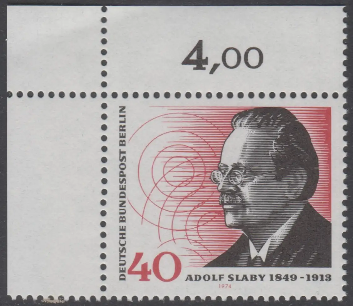 BERLIN 1974 Michel-Nummer 467 postfrisch EINZELMARKE ECKRAND oben links - Adolf Slaby, Funktechniker