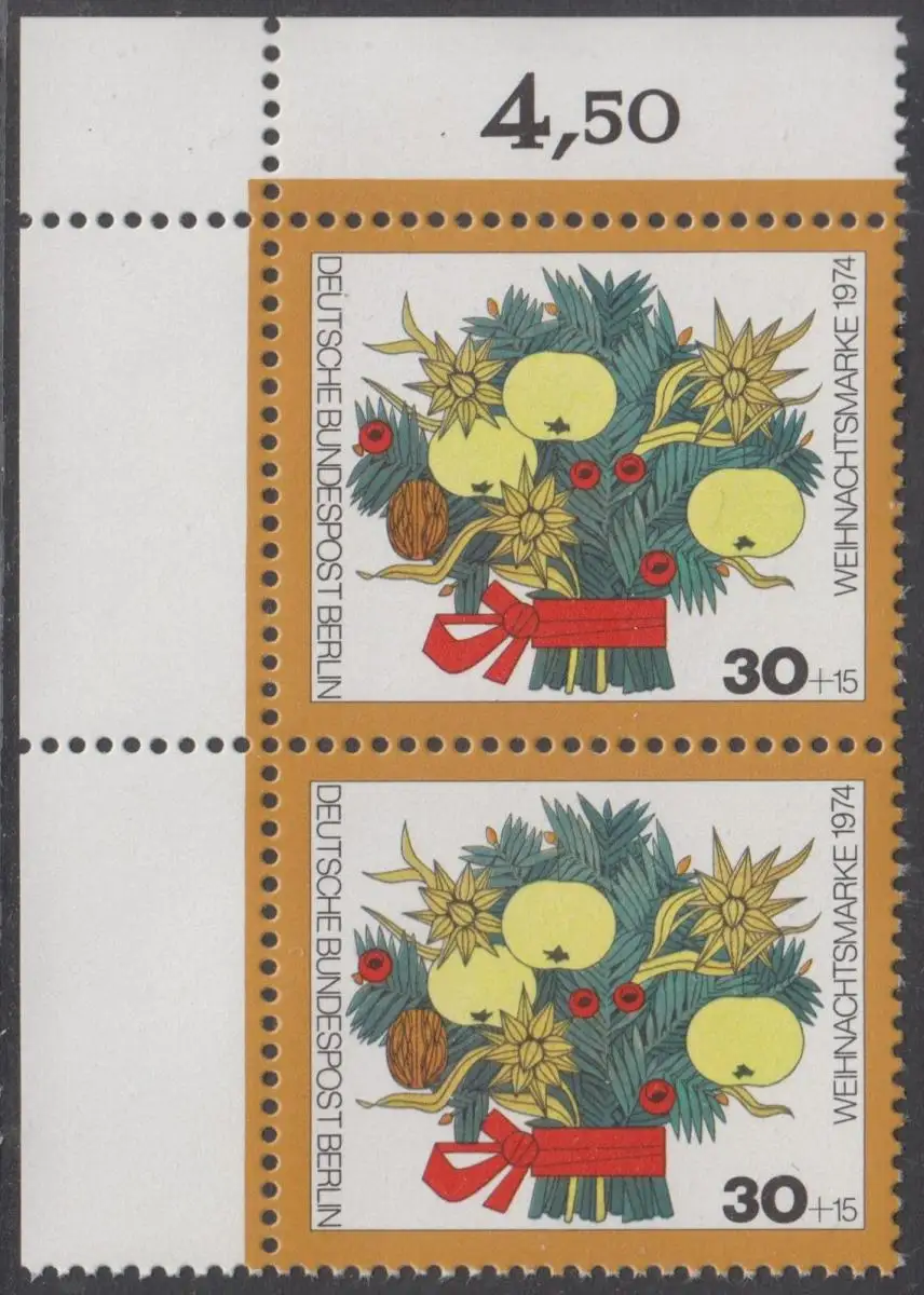 BERLIN 1974 Michel-Nummer 481 postfrisch vert.PAAR ECKRAND oben links - Weihnachten