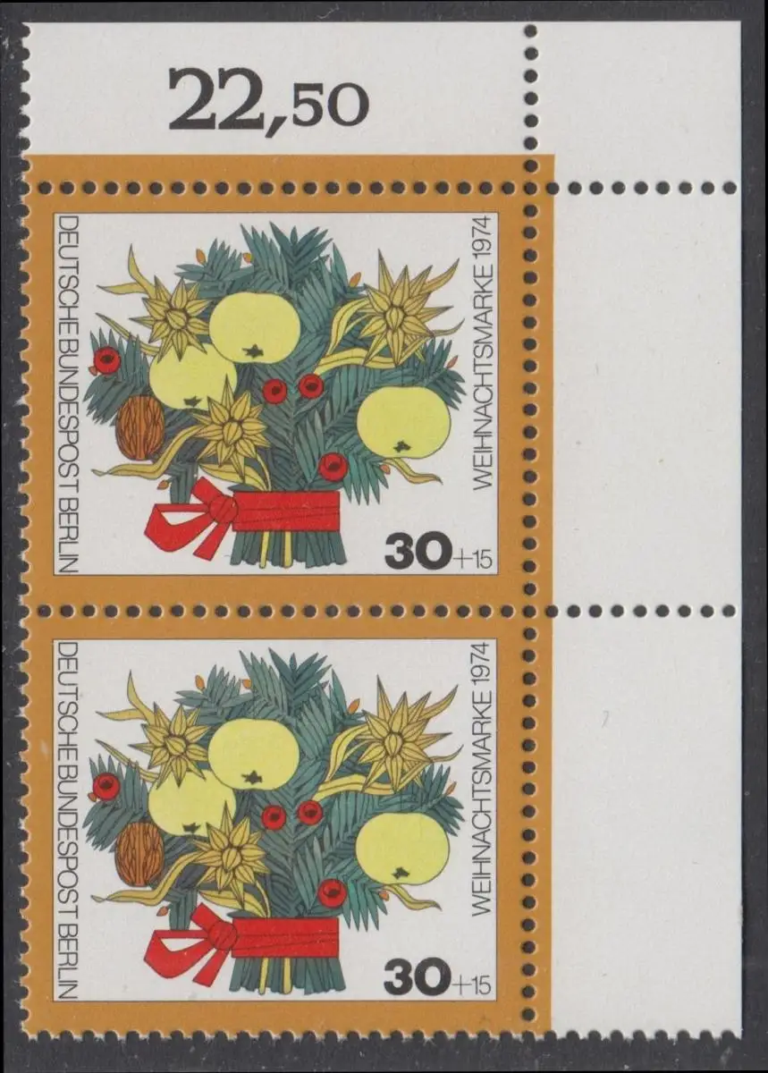 BERLIN 1974 Michel-Nummer 481 postfrisch vert.PAAR ECKRAND oben rechts - Weihnachten
