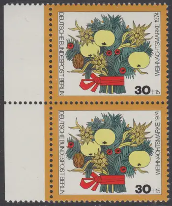 BERLIN 1974 Michel-Nummer 481 postfrisch vert.PAAR RAND links - Weihnachten