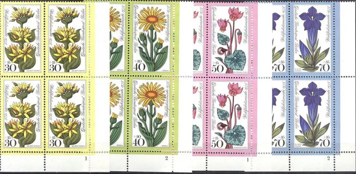 BERLIN 1975 Mi-Nr. 510/13 Viererblocks Formnummern ** MNH