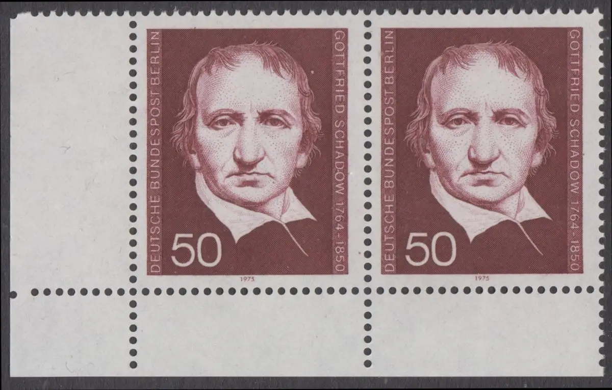 BERLIN 1975 Michel-Nummer 482 postfrisch horiz.PAAR ECKRAND unten links - Gottfried Schadow, Bildhauer und Grafiker