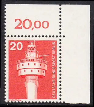 BERLIN 1975 Michel-Nummer 496 postfrisch EINZELMARKE ECKRAND oben rechts - Industrie und Technik: Leuchtturm Alte Weser