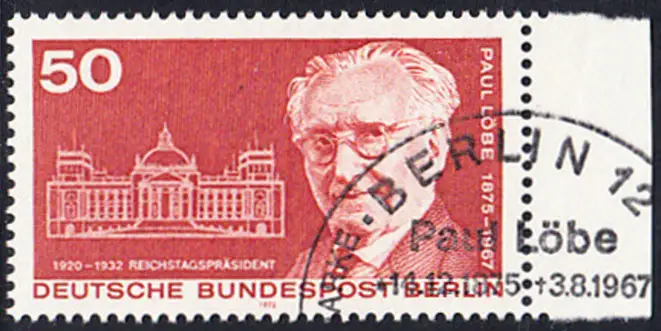 BERLIN 1975 Michel-Nummer 515 gestempelt EINZELMARKE RAND rechts (d)