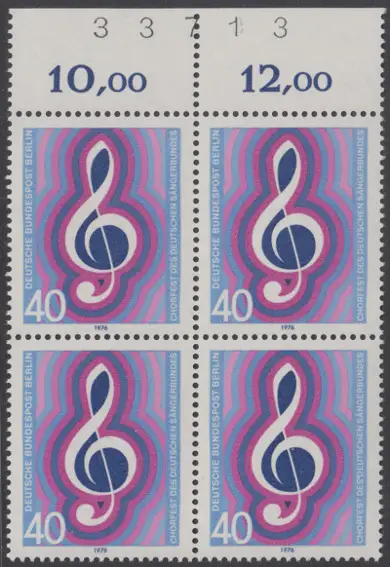 BERLIN 1976 Michel-Nummer 522 postfrisch BLOCK RÄNDER oben (a02) - Chorfest des Deutschen Sängerbundes, Berlin