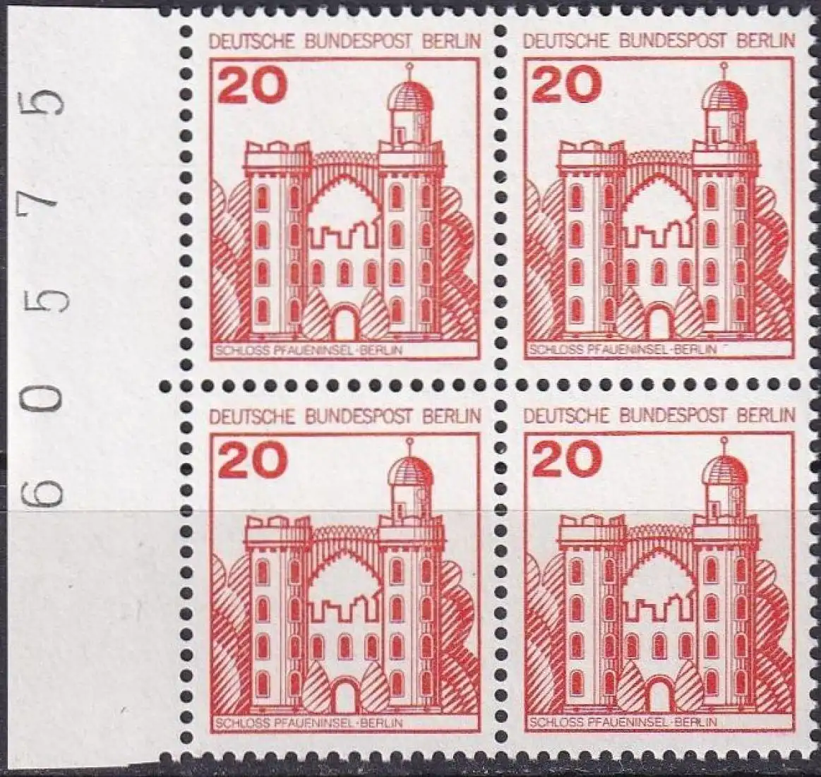 BERLIN 1977 Mi-Nr. 533 Viererblock vom Rand mit Bogennummer ** MNH