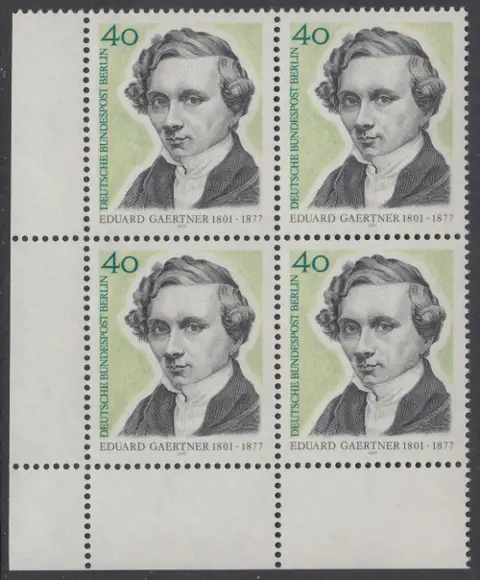 BERLIN 1977 Michel-Nummer 542 postfrisch BLOCK ECKRAND unten links - Eduard Gaertner, Architekturmaler
