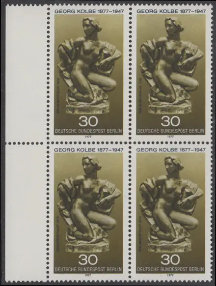 BERLIN 1977 Michel-Nummer 543 postfrisch BLOCK RÄNDER links - Georg Kolbe, Maler und Bildhauer