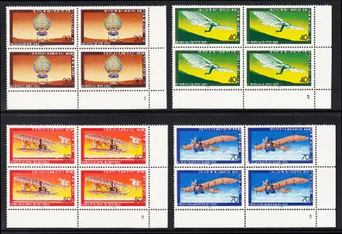 BERLIN 1978 Michel-Nummer 563-566 postfrisch SATZ(4) BLÖCKE ECKRAND unten rechts (FN) - Luftfahrt