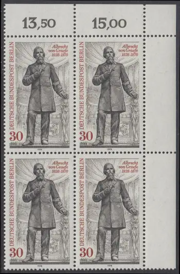 BERLIN 1978 Michel-Nummer 569 postfrisch BLOCK ECKRAND oben rechts - Albrecht von Graefe, Augenarzt
