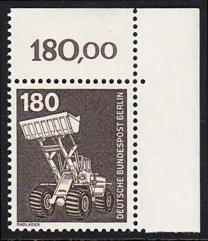 BERLIN 1978 Michel-Nummer 585 postfrisch EINZELMARKE ECKRAND oben rechts - Industrie & Technik: Radlader