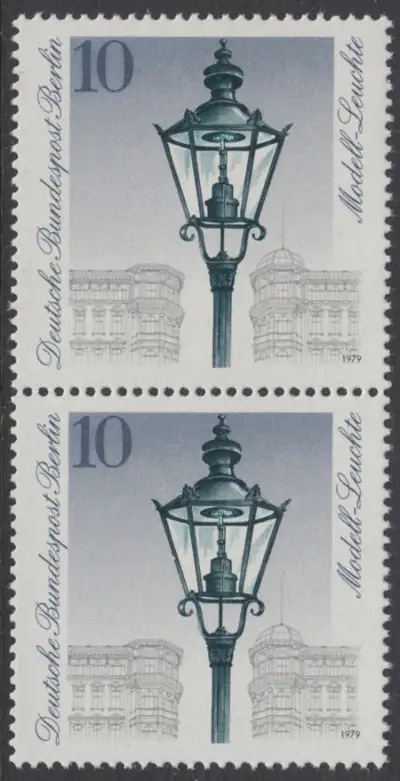 BERLIN 1979 Michel-Nummer 603 postfrisch vert.PAAR - Historische Straßenlaternen: Gasbetriebene Modell-Leuchte