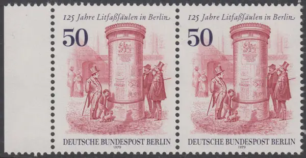BERLIN 1979 Michel-Nummer 612 postfrisch horiz.PAAR RAND links - Litfaßsäulen