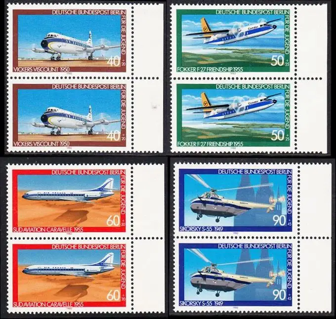 BERLIN 1980 Michel-Nummer 617-620 postfrisch SATZ(4) vert.PAARE RÄNDER rechts - Luftfahrt