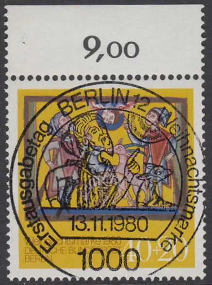 BERLIN 1980 Michel-Nummer 633 gestempelt EINZELMARKE RAND oben (a)