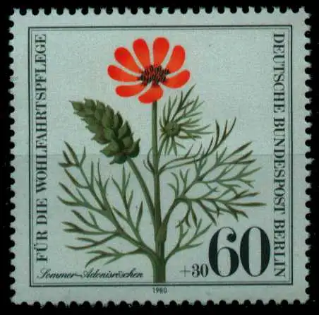 60 + 30 Pfg Wert aus der Ausgabe Wohlfahrt 1980 - Kreuter - Wildkreuter - Blumen