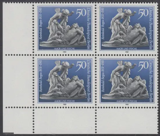BERLIN 1981 Michel-Nummer 647 postfrisch BLOCK ECKRAND unten links - Reinhold Begas, Bildhauer