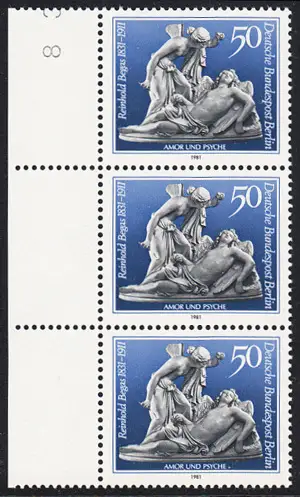 BERLIN 1981 Michel-Nummer 647 postfrisch vert.STRIP(3) RAND links (BZ) - Reinhold Begas, Bildhauer