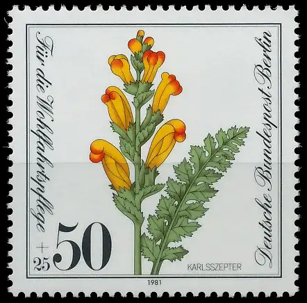 50 + 25 Pfg Wert aus der Ausgabe Wohlfahrt 1981 - Wasserpflanzen - Blumen - Moor - Sumpf