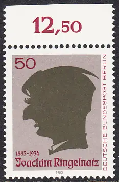 BERLIN 1983 Michel-Nummer 701 postfrisch EINZELMARKE RAND oben (b) - Joachim Ringelnatz, Maler und Schriftsteller (Scherenschnitt)