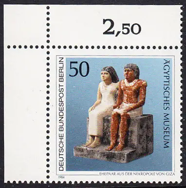 BERLIN 1984 Michel-Nummer 709 postfrisch EINZELMARKE ECKRAND oben links - Kunstschätze in Berliner Museen: Ehepaar aus der Nekropole von Giza (Ägyptisches Museum)