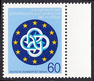BERLIN 1984 Michel-Nummer 721 postfrisch EINZELMARKE RAND rechts - Konferenz der Europäischen Kulturminister, Berlin