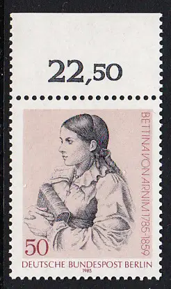 BERLIN 1985 Michel-Nummer 730 postfrisch EINZELMARKE RAND oben (c) - Bettina von Arnim, Schriftstellerin