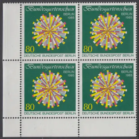 BERLIN 1985 Michel-Nummer 734 postfrisch BLOCK ECKRAND unten links - Bundesgartenschau, Berlin