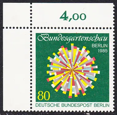 BERLIN 1985 Michel-Nummer 734 postfrisch EINZELMARKE ECKRAND oben links - Bundesgartenschau, Berlin
