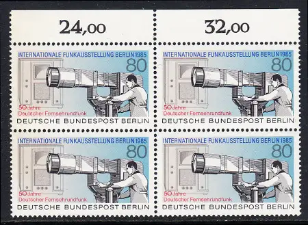 BERLIN 1985 Michel-Nummer 741 postfrisch BLOCK RÄNDER oben - Internationale Funkausstellung (IFA), Berlin / 50 Jahre Deutscher Fernsehrundfunk
