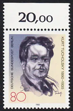 BERLIN 1985 Michel-Nummer 748 postfrisch EINZELMARKE RAND oben (a) - Kurt Tucholsky, Schriftsteller