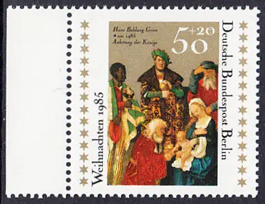 BERLIN 1985 Michel-Nummer 749 postfrisch EINZELMARKE RAND links - Weihnachten