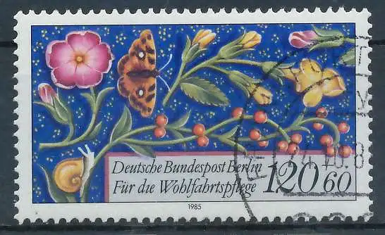 120 + 60 Pfg Wert aus der Ausgabe Wohlfahrt 1985 - Blumen, Vögel, Insekten