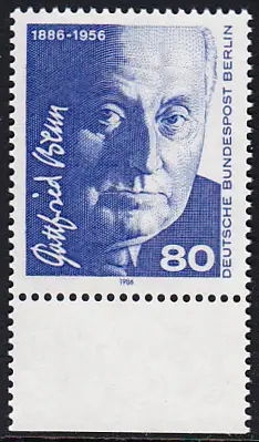 BERLIN 1986 Michel-Nummer 760 postfrisch EINZELMARKE RAND unten - Gottfried Benn, Dichter