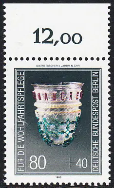 BERLIN 1986 Michel-Nummer 768 postfrisch EINZELMARKE RAND oben (a) - Kostbare Gläser: Diatretbecher