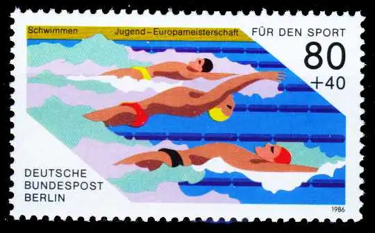 80 + 40 Pfg Wert aus der Ausgabe Sporthilfe - Jugend-Europameisterschaften im Schwimmen in Berlin