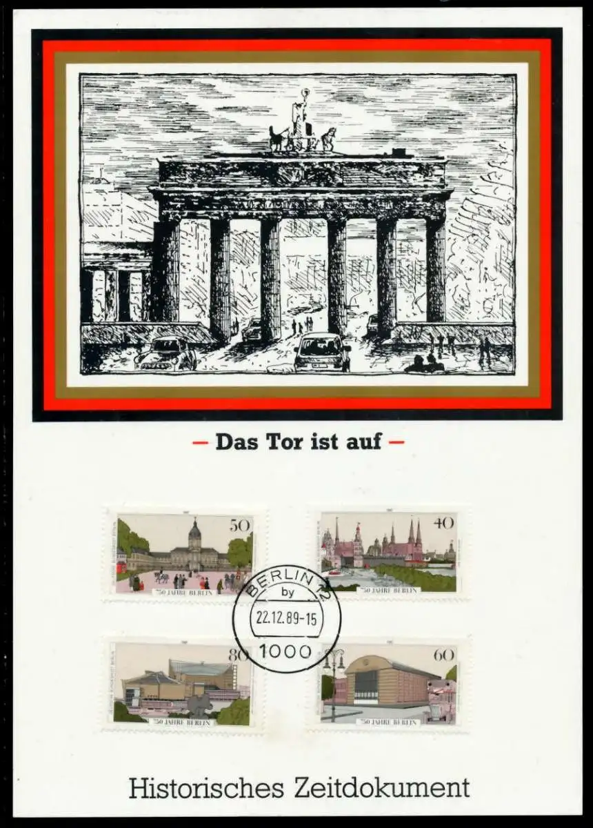 Einzelmarken aus der Blockausgabe 750 Jahre Berlin auf Schmuckblatt