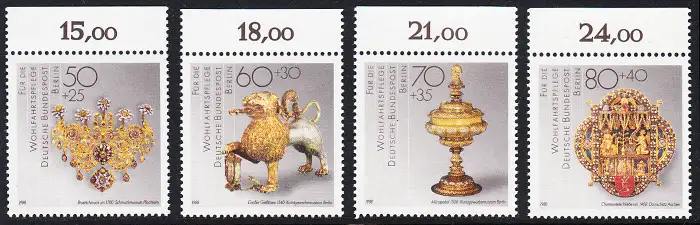 BERLIN 1988 Michel-Nummer 818-821 postfrisch SATZ(4) EINZELMARKEN RÄNDER oben (b) - Gold- und Silberschmiedekunst