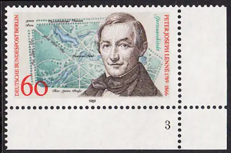 BERLIN 1989 Michel-Nummer 850 postfrisch EINZELMARKE ECKRAND unten rechts (FN/c) - Peter Joseph Lenné, Gartenarchitekt