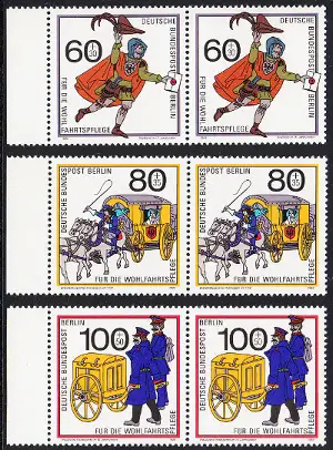 BERLIN 1989 Michel-Nummer 852-854 postfrisch SATZ(3) horiz.PAARE RÄNDER links - Postbeförderung im Laufe der Jahrhunderte
