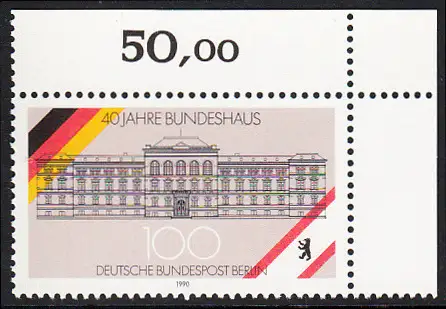 BERLIN 1990 Michel-Nummer 867 postfrisch EINZELMARKE ECKRAND oben rechts - Bundeshaus in Berlin