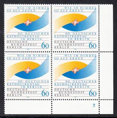 BERLIN 1990 Michel-Nummer 873 postfrisch BLOCK ECKRAND unten rechts - Deutscher Katholikentag, Berlin
