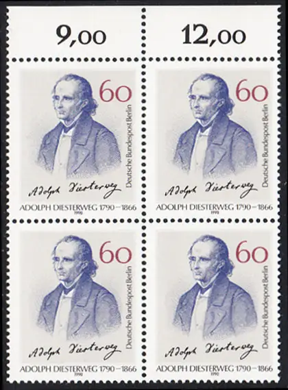 BERLIN 1990 Michel-Nummer 879 postfrisch BLOCK RÄNDER oben - Adolph Dieseterweg, Pädagoge