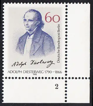 BERLIN 1990 Michel-Nummer 879 postfrisch EINZELMARKE ECKRAND unten rechts (FN) - Adolph Dieseterweg, Pädagoge
