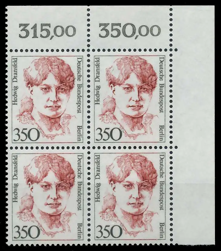 BERLIN DS FRAUEN Nr 828 postfrisch VIERERBLOCK ECKE-ORE 8F913E
