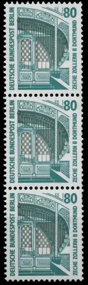 080 Pfg Wert aus der Berlin-Dauerserienausgabe Sehenswürdigkeiten als 3er Streifen, ein Wert mit rückseitiger Nummer