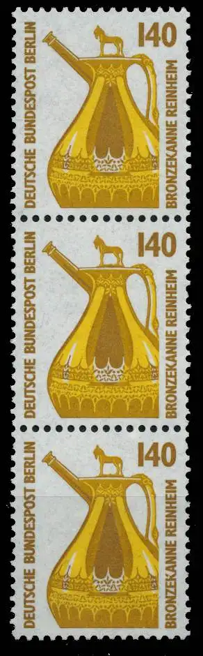 140 Pfg Wert aus der Berlin-Dauerserienausgabe Sehenswürdigkeiten als 3er Streifen, ein Wert mit rückseitiger Nummer 110