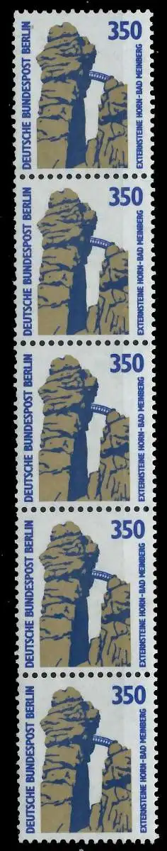 350 Pfg Wert aus der Berlin-Dauerserienausgabe Sehenswürdigkeiten als 5er Streifen, ein Wert mit rückseitiger Nummer 295