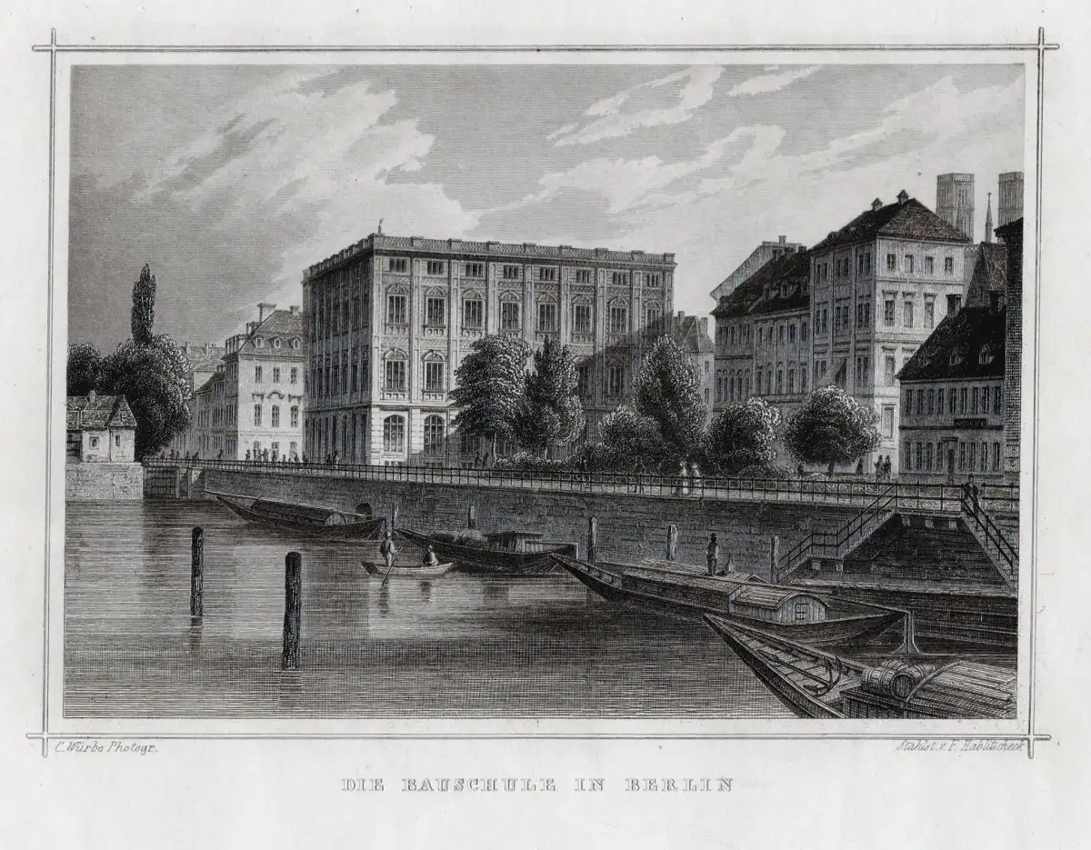 BERLIN: Die Bauschule. Originaler Stahlstich Hablitscheck um 1880