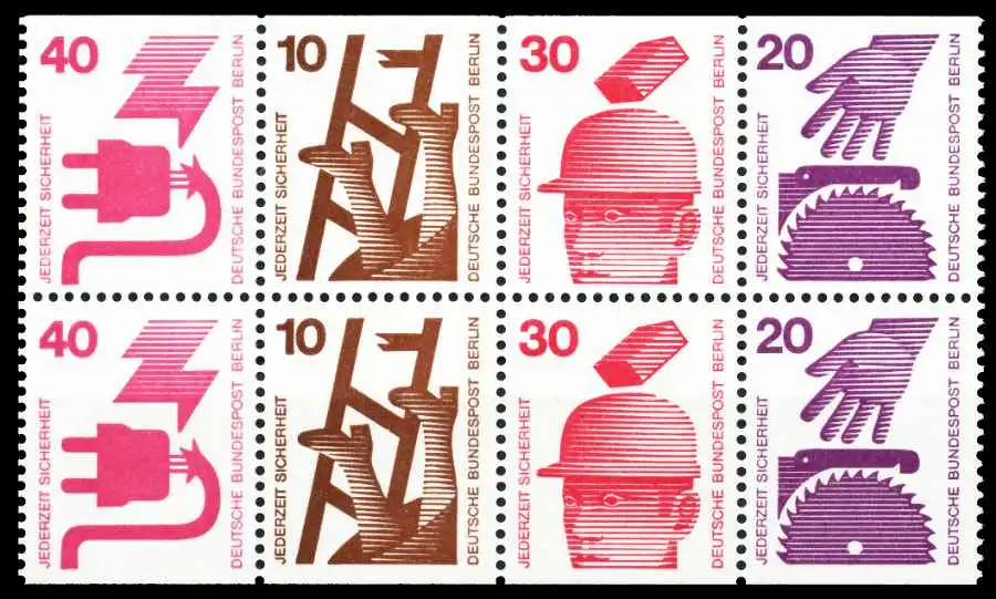 Berlin Unfallverhütung Heftchenblatt 17, oben und unten geschnitten (MichelNr.: 17, 403C/D, 404C/D, 406C/D, 407C/D)